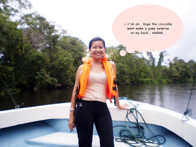 Kids, let me advise you. Do not do this in your river safari. NO~! you can stand there, no worries. What i wanted to tell you is that.. DO NOT WEAR ANY SHINY OBJECT, BLING- BLINGS ON THE BOAT. It might attract the creature underwater ok?